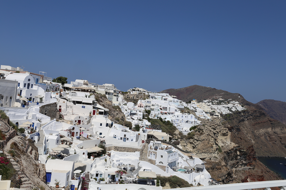 산토리니섬의 해안을 따라 세워진 마을들과 곳곳에 있는 흰색으로 칠해진 건물들을 보면 신선한 느낌이 들더라구요. 길이 잘 연결된 것처럼 보이지만, 실제로 건물사이사이로 다닐 수 있는 길은 많지 않구요. 저기에 사시는 분들이나 숙소를 이용하는 사람들을 위한 것처럼 보이더라구요.