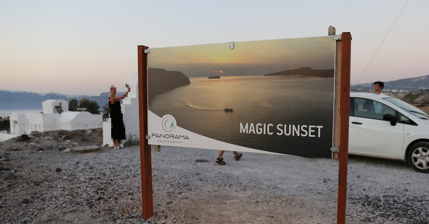 산토리니섬을 나오기가 아쉽다면서 산토리니의 일몰 포인트를 산토리니 마지막 일정에 배치되었더라구요. 여기에는 현지인들에게 인기가 많은 곳인데 이름이 매직 선셋(magic sunset)이라는 간판이 크게 펼쳐져 있는데요. 아는 사람만 오는 그런 곳이더라고요.